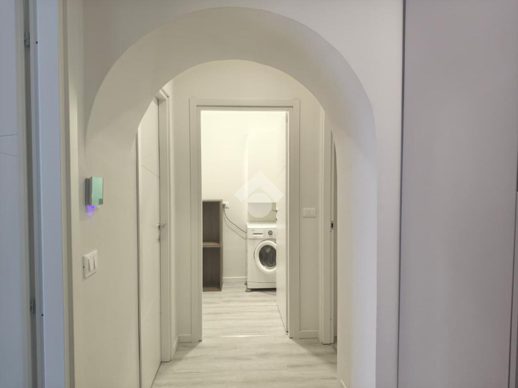 Completano la soluzione una lavanderia ed un servizio igienico corredato di piatto doccia filo pavimento con box in cristallo e sanitari sospesi.