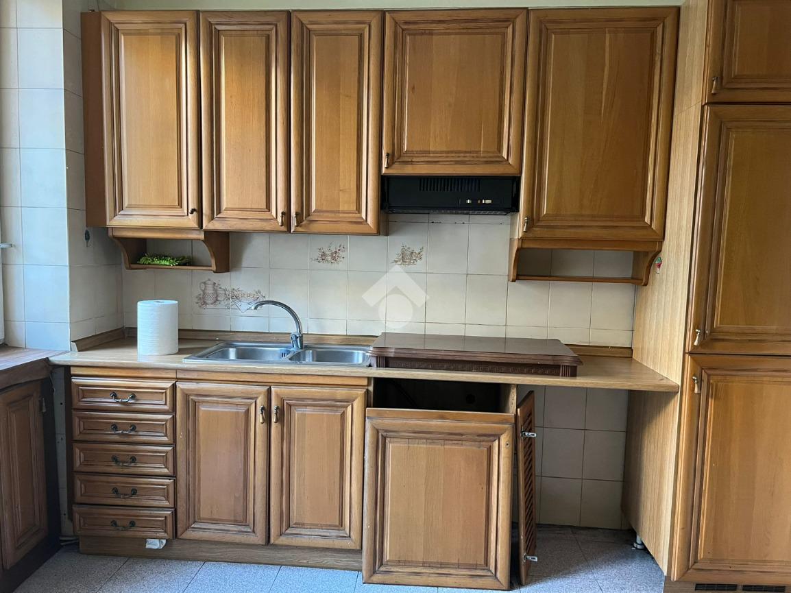 La cucina è abitabile, e dotata di accesso al balcone con affaccio interno cortile, ideale per chi ama uno spazio conviviale e facilmente arredabile.