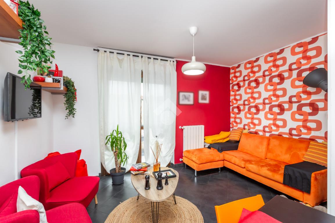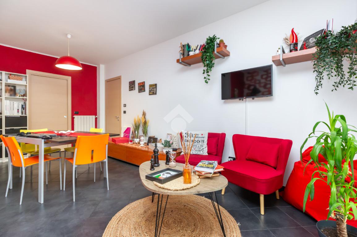 Il portone blindato si apre su un soggiorno living molto ampio e luminoso grazie alla presenza di una porta finestra con affaccio sulla via principale.
